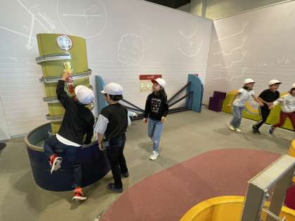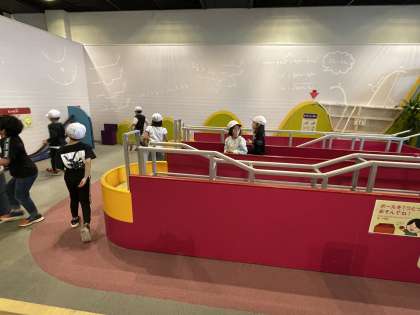 と思ったら、今、他の白い帽子の学校の子がたくさん入ってきました!今日は11校の入館予定だそうです。これでも少ない方なんですって。