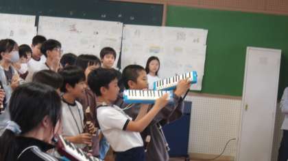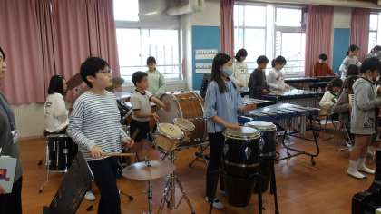 今日は5年生の学年練習をのぞきました。鍵盤楽器のマレットの動きや、鍵盤ハーモニカの見せ場の様子などに、みんなのやる気を感じました。6年生も同じように学年練習をしているので、2学年合同で合奏するのを見るのが楽しみです。