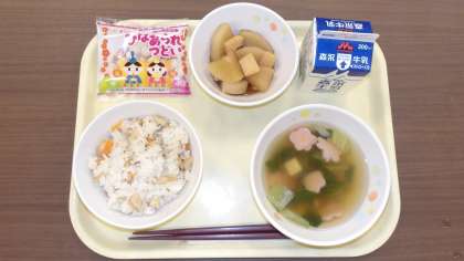 ゆずの香りの効いたすまし汁、ちらしずし、イカと大根の煮物、牛乳です。