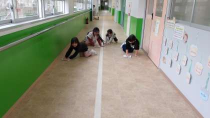 いつも職員室の前をきれいに拭いてくれる1年生のみなさんです。