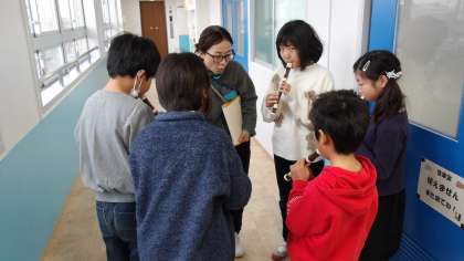 廊下でリコーダーの練習をしています。ん?このフレーズは… 鉄腕アトム!