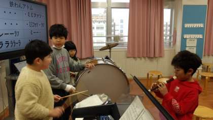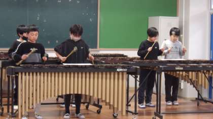 教室ではいろんな楽器でノリノリで練習していました。木琴を演奏している子たちの手の動きがばっちり揃っていますね!今から来年度の連合音楽会が楽しみです。