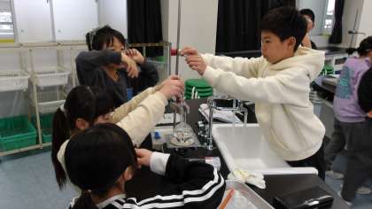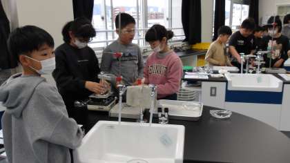 ガスコンロを使って水を沸騰させて気化させる実験のようです。