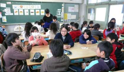食べ物の単語の練習をして、班に分かれて楽しくゲームをしていました。