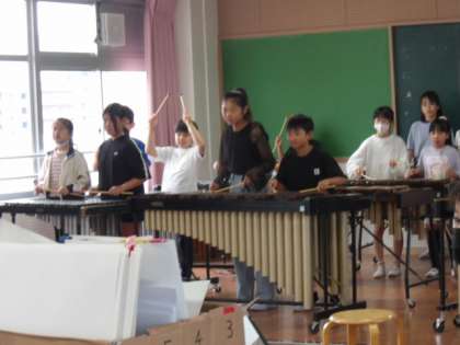 オルガンの音が大きく響いていたので、パイプオルガンの曲を鑑賞しているのかな?と思いましたが、教室に行ってみると、みんなでいろんな楽器を使って和音を鳴らしていました。