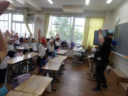 3年生では、歌を大きな声で歌いながら手や体を動かして音楽を全身でたのしんでいました。