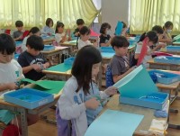 旗を振るたびに「バシッ」という音が運動場に響きます。旗に見え隠れしてみんなの笑顔がこぼれて見えるのが素敵でした。