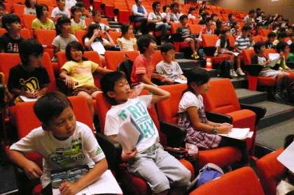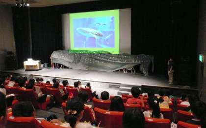 海遊館に到着すると、「海遊館アカデミー」で職員の方からジンベエザメについて、たくさんのことを教えていただきました。