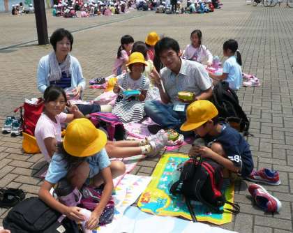 先生と一緒に食べているグループもありました。天気も良くなり、思い出に残る遠足になったと思います。