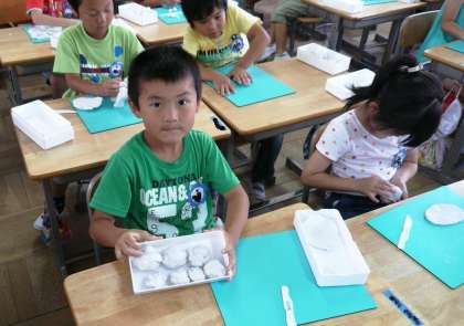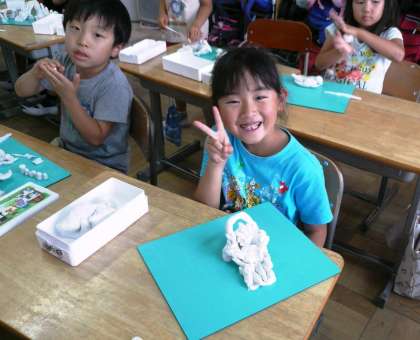 1年生は、今日の遠足の思い出を粘土で創っていました。