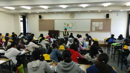 広島市青少年センターで被爆体験のお話を聞きました。講師はくわ本勝子さんです。