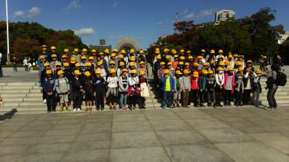 慰霊碑の前で記念写真を撮りました。