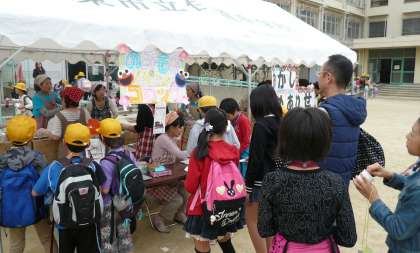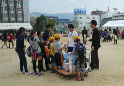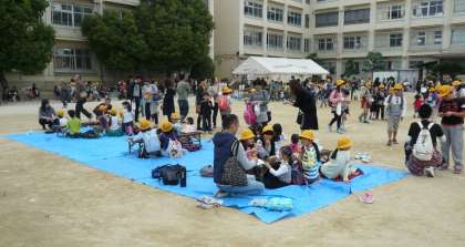 模擬店でおにぎり、チキンナゲットやコロッケ等を買って楽しそうに食べていました。
