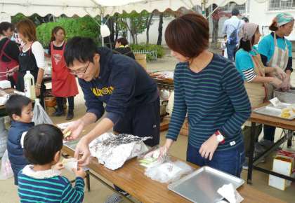 模擬店では、本校の役員さんと教員がフライドポテトを担当しました。