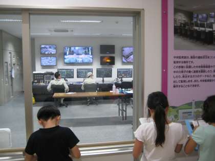 前回見学した府警本部と同じように、ごみ処理場にもすべてを管理して指示を出す中央監視室がありました。