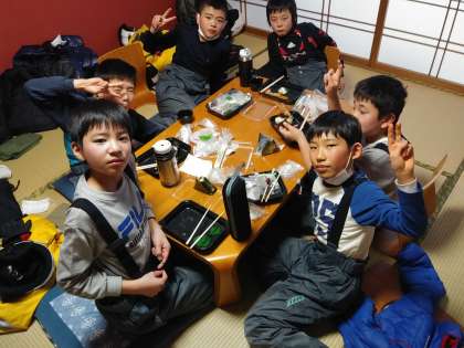 実際の今の様子は1日目のスキー教室を終えて、部屋でくつろいでいるところです。お昼の部屋の様子です。