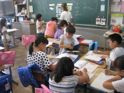 3年生は練習問題のところを全員がわかるように、互いに教え合い、学び合う授業をしていました。