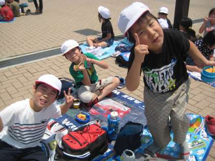 遠足のもう一つの楽しみは、みんなと一緒に食べるお弁当です。