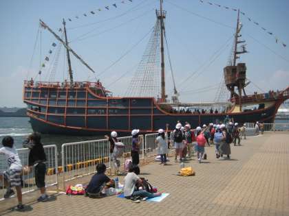 遊覧船サンタマリア号にも手を振ってこたえました。