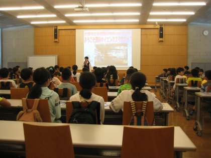 灘浜サイエンススクエアでは、全体に説明を受けた後、1組と2組が交互に展示場での体験と製鉄所見学を行いました。