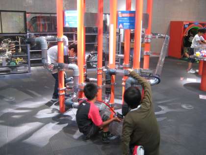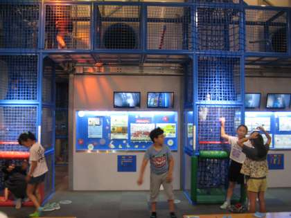 鉄枠でできた、室内アスレチックは人気で、早速中に入って遊んでいました。