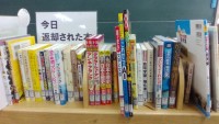 図書館でビンゴを開催しているので、返却棚は、さまざまなジャンルの本が並びます...