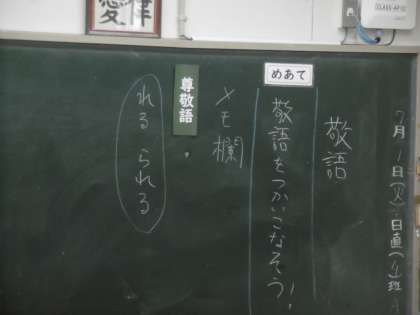 授業のめあては「敬語をつかいこなそう」でした。今日もとても分かりやすく作られた学習プリントが印象的でした。1学期の登校日数もあと14日。がんばろう! 47期生!