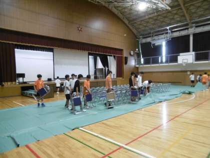 男子バスケットボール部は、快く体育館で行う授業の会場準備をしてくれました。ありがとう。女子バレー部も朝練が始まりました。子どもたちは朝からがんばっていました。