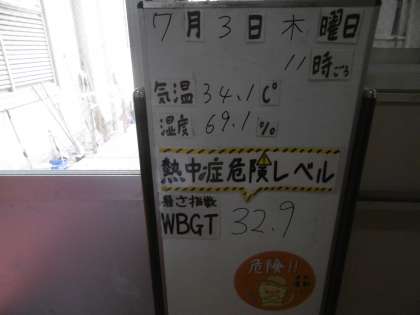 11時現在、気温34.1度、湿度69.1%、WBGT(暑さ指数)32.9でした。今後も大東市公立学校園熱中症対策ガイドラインに沿って対応してまいります。