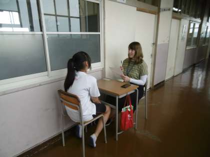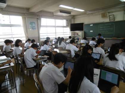 タブレットパソコンを使って学習用教材(Qubena)で各自で復習をしていました。廊下では本校のAET(英語実習助手)による会話テストが行われていました。英語実習助手から出される英語の質問に一生懸命に英語で答えようとしていた48期生に感心しました。