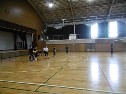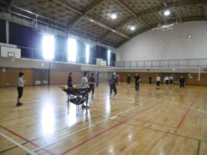 女子バレー部が朝練をがんばっていました。顧問の先生が打つサーブを子どもたちが一生懸命に返していました。