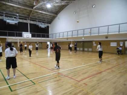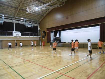 女子バレー部と男子バスケットボール部の朝練の様子です。時間をよく守って、きびきびとした練習をすることができていました。