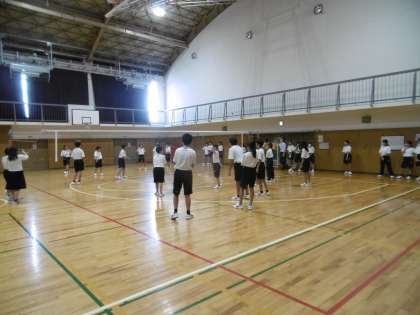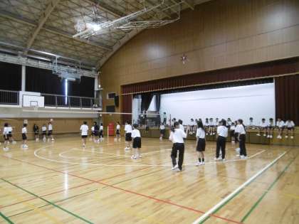 今日の3〜4時間目に体育館でバレーボール大会が行われていました。校長室まで生徒の歓声が聞こえるほど、盛り上がっていました。優勝は2組でした。