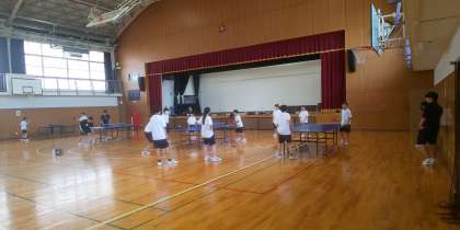 写真は上から、卓球部、女子バレー部です。暑い中でしたが、子どもたちは、本当によくがんばっていました。