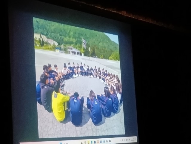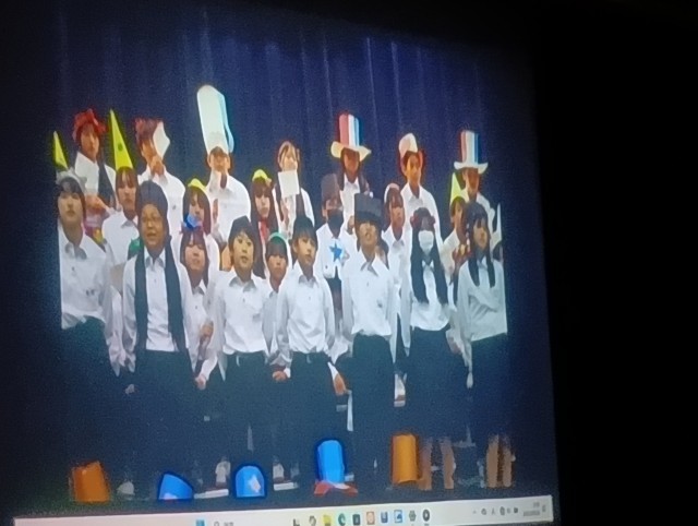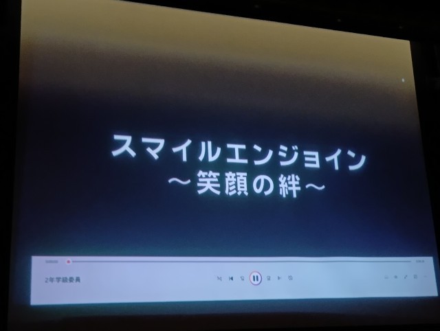 2年学級委員会による動画発表でした。笑顔をテーマに今まで47期生の仲間と楽しんだたくさんの懐かしい行事の動画がながれていました。いつも分刻みで盛りだくさんの企画をしている47期生らしい動画となりました。