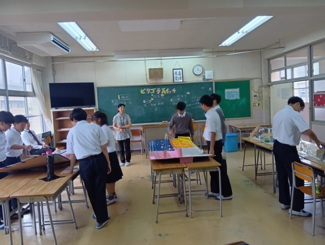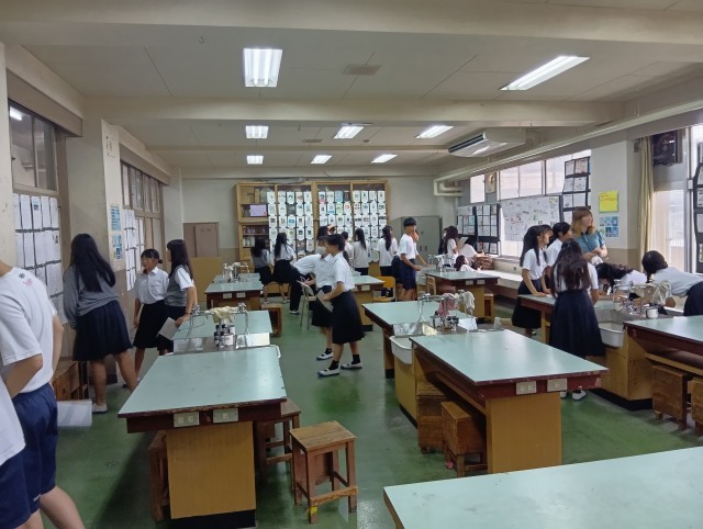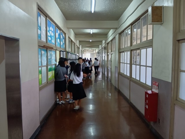 生徒の展示の部が始まりました。各教科や行事などを通して作製した作品を子どもたちは、ルールを守って見学していました。