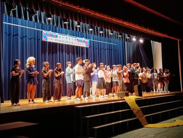 3年3組のクラス劇の様子です。平和をモチーフに、歌やダンスで平和へのメッセージを伝える構成になっていました。歌やダンスが本当に上手でした。46期生の学年の力を改めて感じることができた3クラスの演劇でした。46期生の皆さん、本当によく頑張りました!