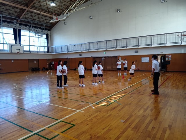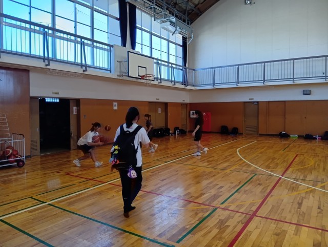 女子バスケットボール部が朝練をがんばっていました。元気なあいさつも、いつもできています。先日行われた公式戦の反省練習を早速行っていました。