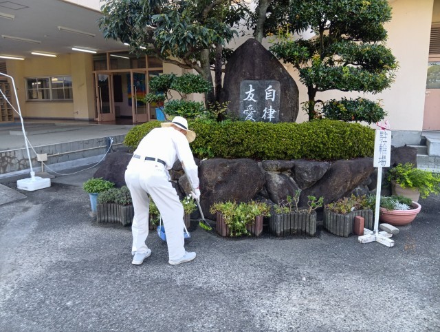 生徒が登校する前に環境整備員さんが校内の掃除をしてくださっていました。環境整備員さんが掃除をした後は、職人技を感じるほど、見事にきれいになっています。