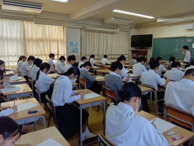 3年生の第3回実力テストが始まりました。自分の進路を決めていくとても大切なテストになります。写真は上から、3組、2組、1組です。46期生の最後まであきらめない態度を期待しています。