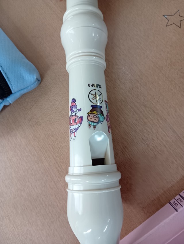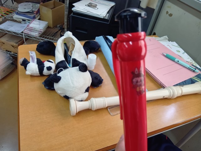 学習内容は「リコーダー」でした。上手に最後まで演奏することがてきた人には、素敵なシールが教科担当の先生から配られていました。