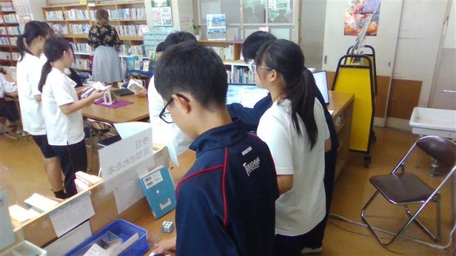 後期 図書委員さんがはじめてのカウンター内のお仕事を行っています。