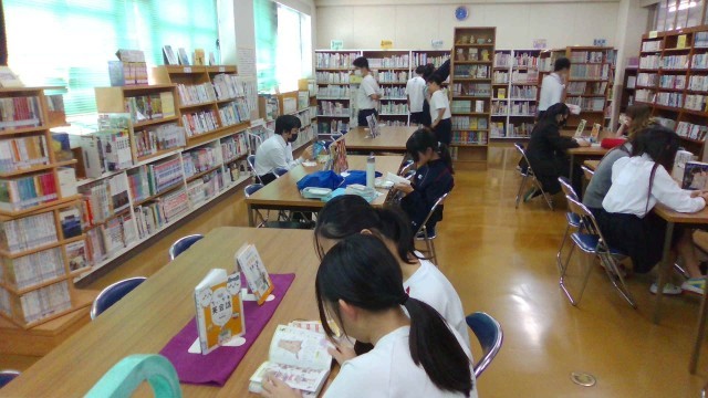 お昼休みの図書館です
