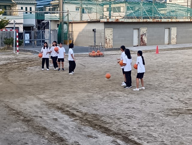 写真は上から、サッカー部、女子バレー部、女子バスケットボール部です。「がんばれば感動」、「がんばる時はいつも今」の気持ちを忘れずに、日々の練習をがんばりましょう。