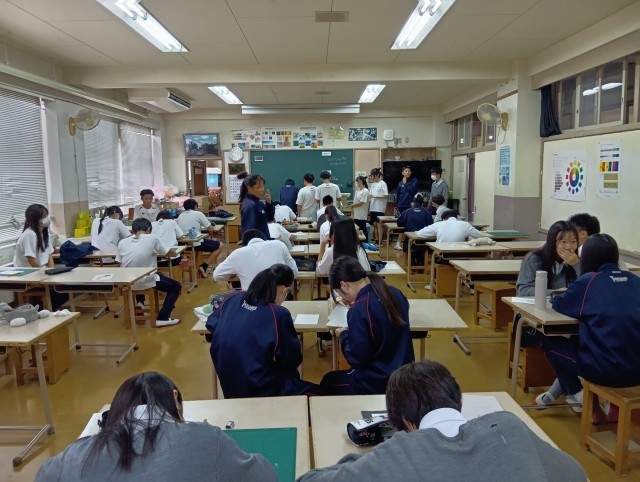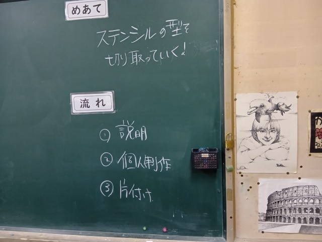 集中して、作品作りをしていました。授業のめあては「ステンシルの型を切り取っていく」でした。