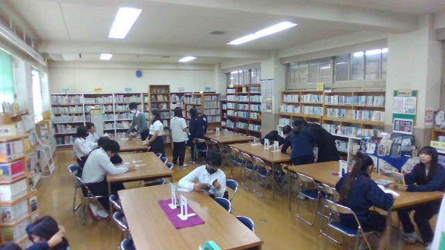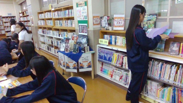 図書委員さんは、返却本を書架になおすのに大忙しです。