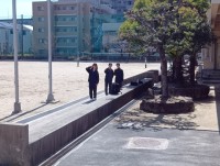 警備員さんが不審者対応として、今日も職員玄関に生徒の登校時間に合わせて、立ってくださっていました。