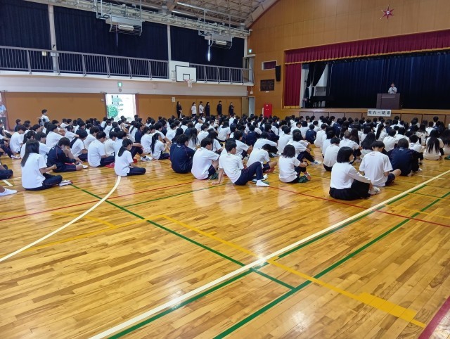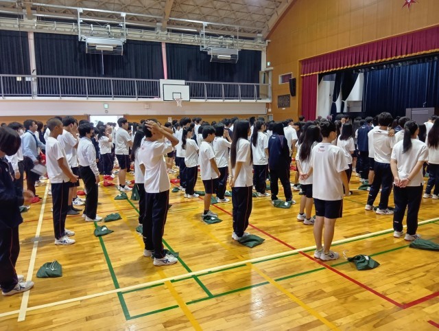 今日も生徒会役員の進行のもと、全校集会が行われました。男女バスケットボール部の表彰のあと、校長からは受験をがんばって乗り切ってほしいという願いを込めて、「努力=結果」という話を自分の高校時代の話と合わせて生徒にしました。写真の1枚目は、全校集会の打ち合わせを担当の先生としている本校の生徒会役員です。