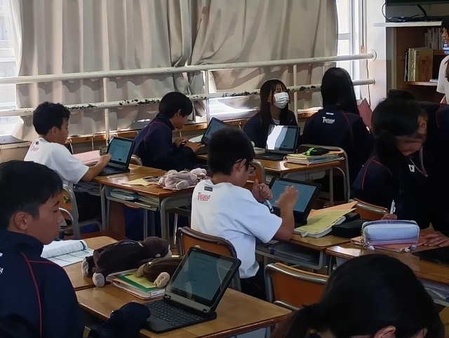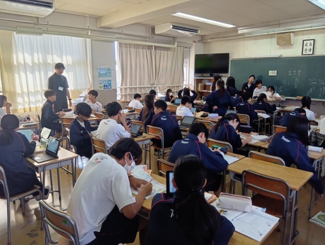 タブレットパソコンが大活躍でした。教科担当の先生に積極的に質問をしている生徒が印象的でした。3組の生徒のがんばりに感心しました。