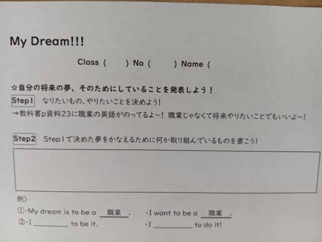 授業のめあては「将来の夢、そのためにしていることを発表しよう」でした。自分の夢を堂々とみんなの前で発表することができましたか?